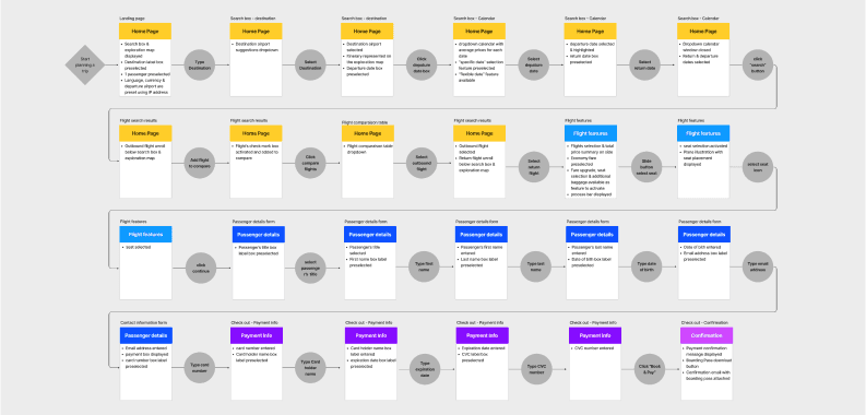 The next step was to identify the user pain points in the booking process and map the journey chronologically.