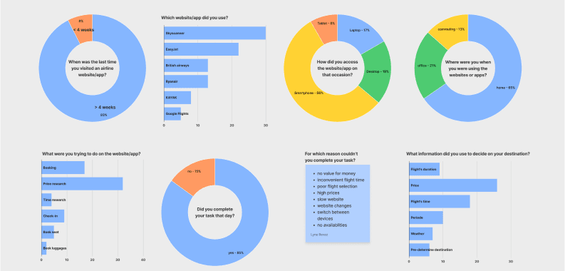 I developed an online survey and gathered significant insights - both quantitative and qualitative data - to better understand how people interact with airline websites.
